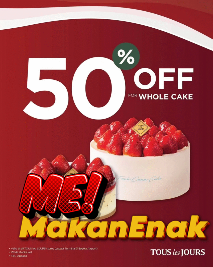 makanenak – Tous Les Jours kembali menghadirkan promo menarik bagi para pencinta roti dan kue dengan penawaran diskon 50% untuk semua kue utuh. Promo ini menjadi kesempatan emas bagi pelanggan untuk menikmati berbagai pilihan kue berkualitas dengan harga lebih terjangkau. Tidak hanya memberikan keuntungan finansial, promo ini juga meningkatkan pengalaman bersantap dan berbagi momen manis bersama keluarga maupun teman.